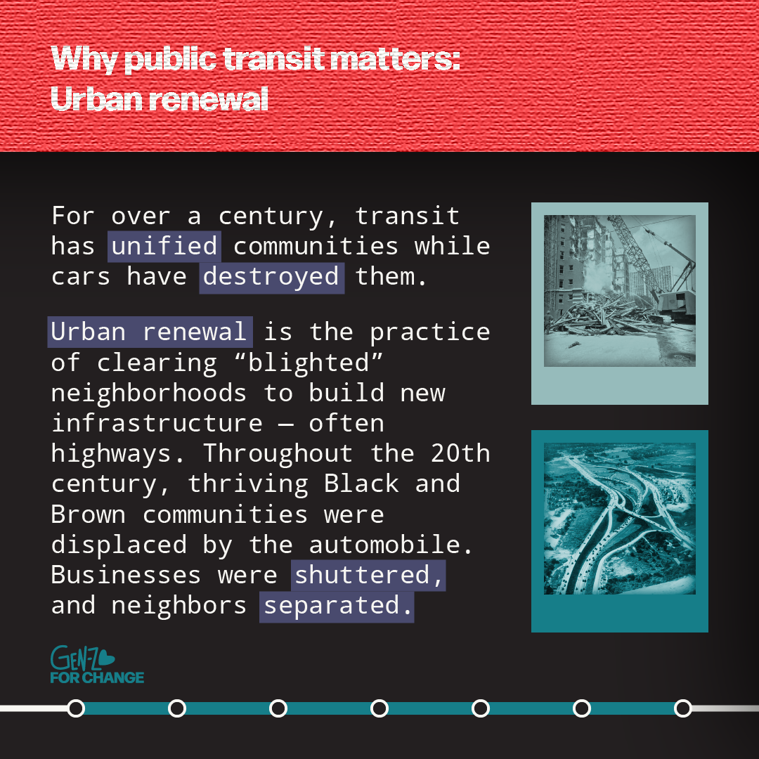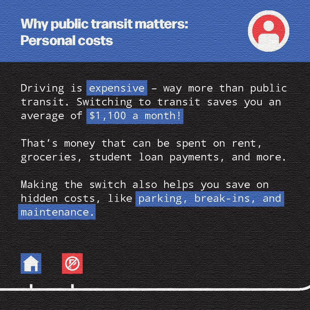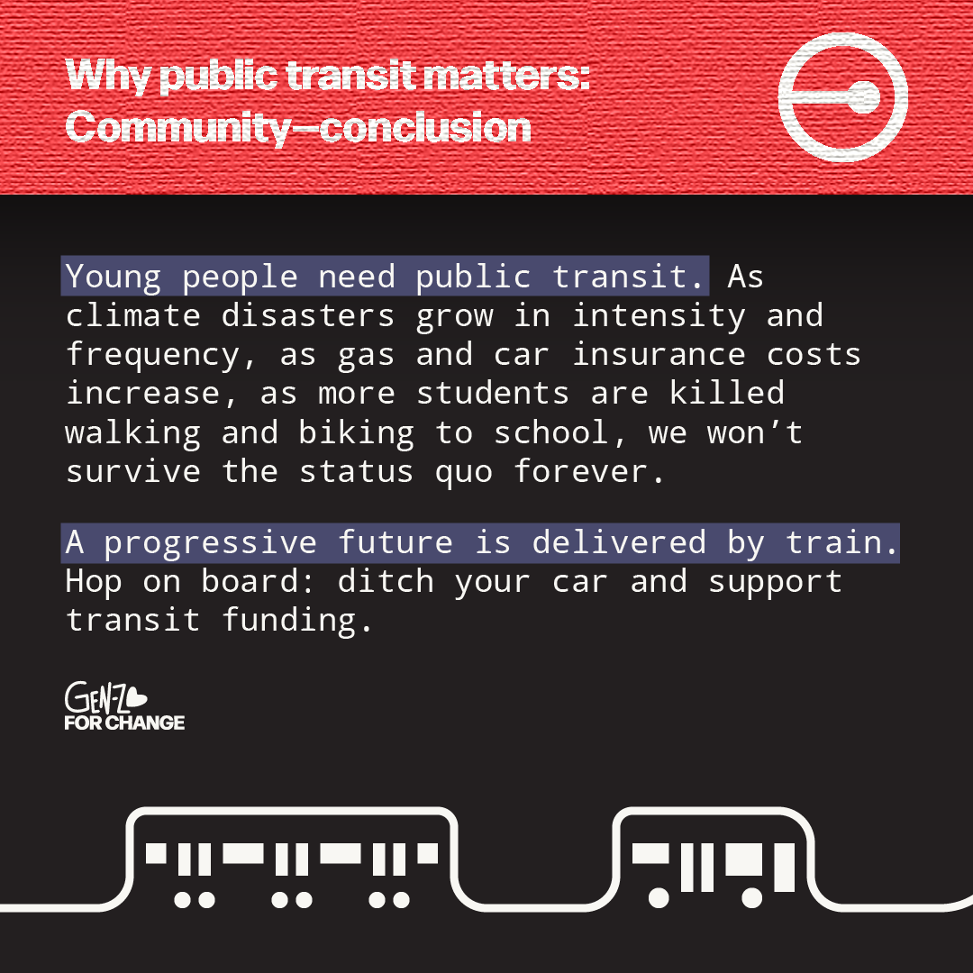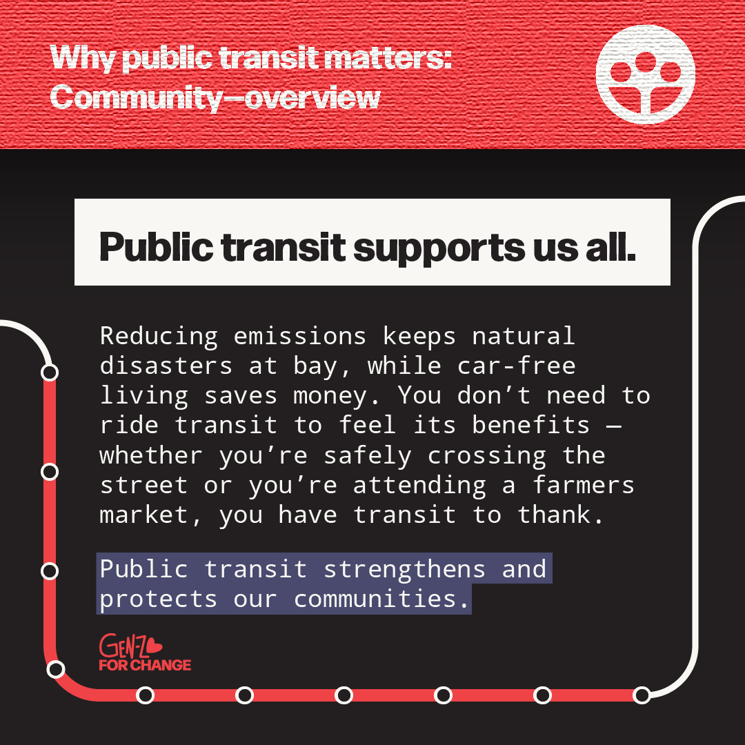 Gen-Z for Change, a non-profit progressive youth organization, commissioned me to design two of a series of Instagram carousel posts about public transit. These posts describe the economic and community impacts of effective transit, presented in a format inspired by station signage. The organization's brand guidelines informed colour and typography choices.